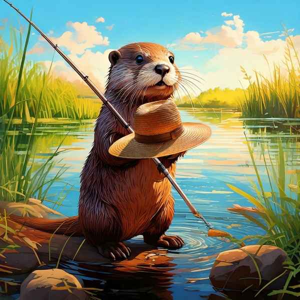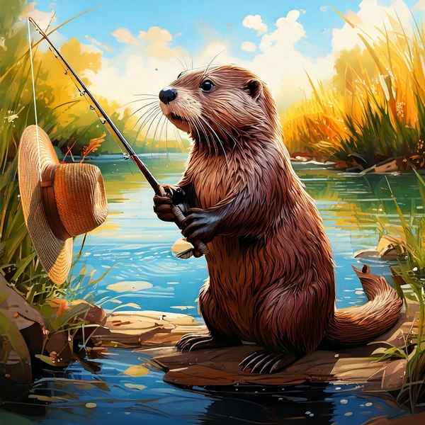 大物がかかった!とバリーが必死で釣りざおを引き上げようとします。